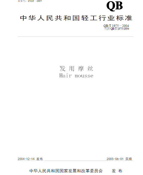 發用摩絲 QB 1643質檢報告標準下載